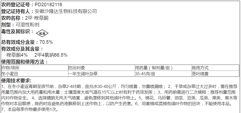70.5%2甲·唑草酮WP